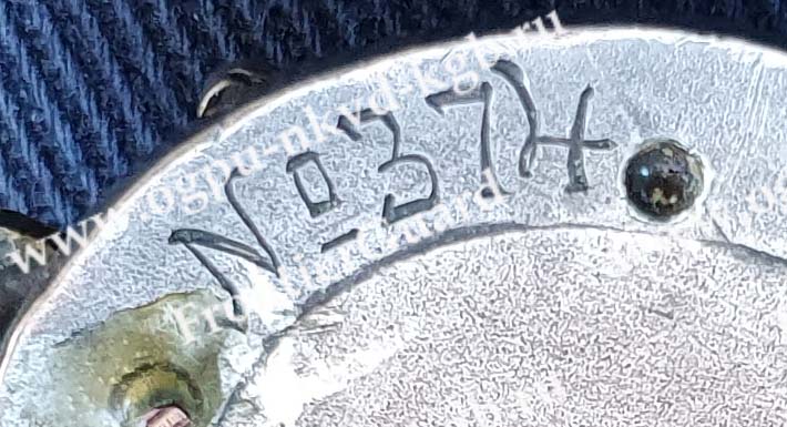 Знак 5 лет ВЧК-ГПУ с зеленой эмалью №374, изготовлен путем вставки овала в отверстие оригинального знака 1-го типа. На вставке, равномерно, как и на всем знаке, присутствует финишная обработка. Это говорит о том, что знак прошел фабричную финишную обработку будучи уже "зеленым". По моему мнению, он или изначально был изготовлен и вручен кавалеру в таком виде, или фабрично доработан после того, как кавалер в 1931г. перешел на работу в отдел кадров центрального аппарата.